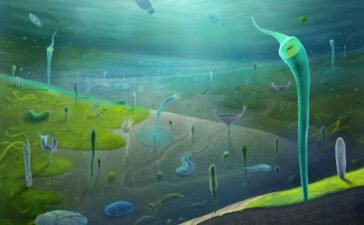 Artist’s reconstruction of the ancient ocean ecosystem preserved in the Jiangchuan biotaXiaodong Wang A huge and beautifully preserved...