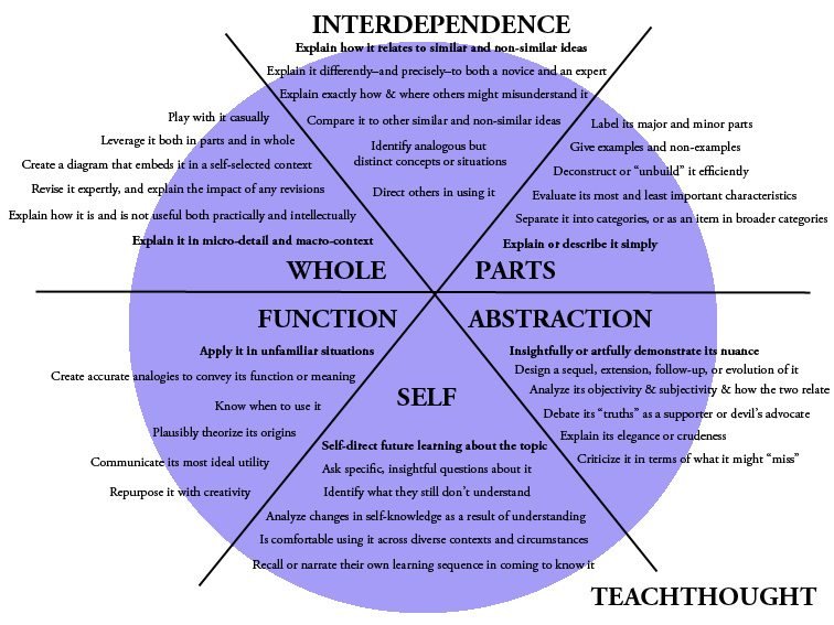 So if a student gets it, beyond pure academic performance what might they be able to do? There are many existing taxonomies and characteristics, from Bloom’s to Understanding by Design’s 6 Facets of Understanding.