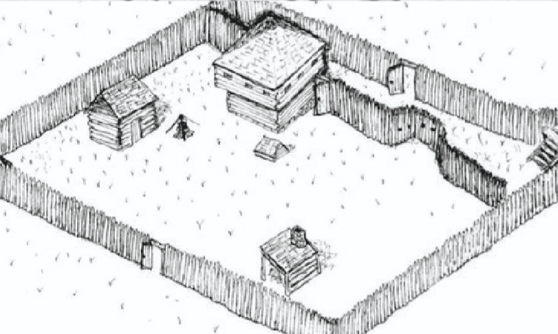 It was square and enclosed approximately half an acre’s space which was manned by a garrison of between 50 to 100 men. The fort contained a single wooden clapboard barracks, one story high, sixteen feet wide and thirty or forty feet long.