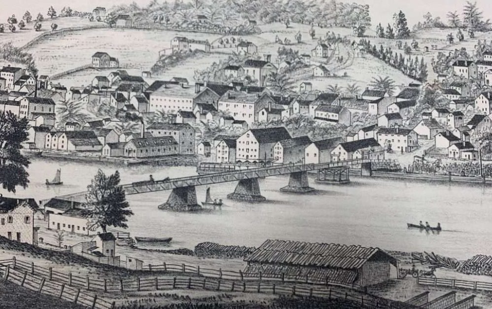 This bridge site resulted in the designation “Bridge Street” that led to the crossing, a name that remains today with the latest of three successor bridges.
