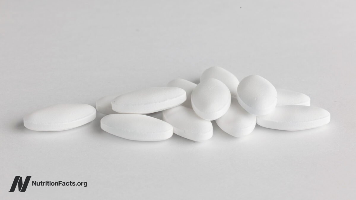 In that case, it isn’t an extra ten days, but living up to ten extra years. Taking statins can enable you to live years longer. That’s because, for every millimole per liter you lower your bad LDL cholesterol, you may live three years longer and maybe even six more years, depending on which study you’re reading. A millimole in U.S. units is 39 points. Drop your LDL cholesterol by about 39 points, and you could live years longer. Exercise your whole life, and you may only increase your lifespan by six months, and stopping smoking may net you nine months. But if you drop your LDL cholesterol by about 39 points, you could live years longer. You can accomplish that by taking drugs, or you can achieve that within just two weeks of eating a diet packed with fruits, vegetables, and nuts, as seen here and at 5:30 in my video.
