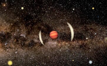 Artist’s impression of the free-floating planet lensing light from a distant sourceJ. Skowron/OGLE Nearly 10,000 light years away,...
