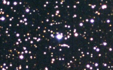 An image captured by a telescope at the Grasslands Observatory in Arizona. The “x” is where E. E....