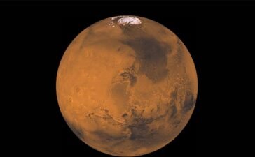 The Acidalia Planitia, the darker region towards the top right of this image of Mars, may host bacteria...