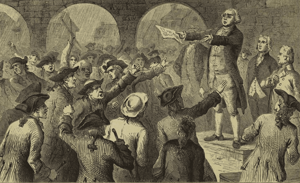 Sons of Liberty meet across the American Colonies to discuss resistance to parliamentary overreach shown in "Agitation against tea ships, New York City, 1773" (NYPL)Sons of Liberty meet across the American Colonies to discuss resistance to parliamentary overreach shown in "Agitation against tea ships, New York City, 1773" (NYPL)According to Webster’s American Dictionary, “critical mass” is the time when a turning point is reached in a series of events leading to a major action. Scientifically, the term is used when sufficient size of matter leads to a chain reaction, as in a nuclear reactor.