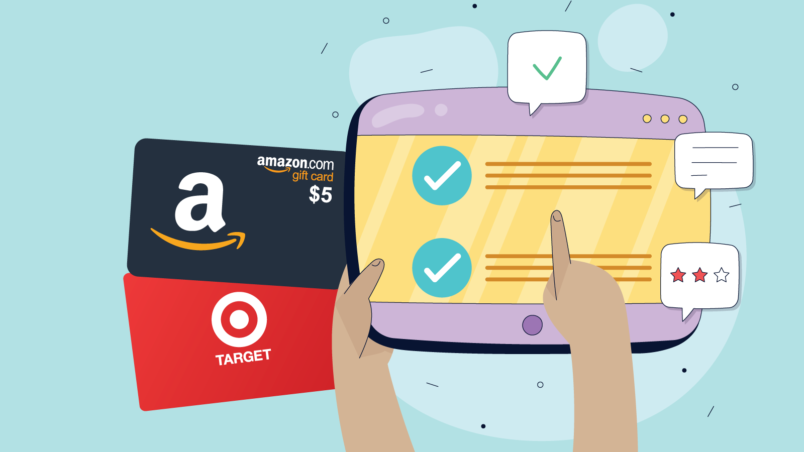 You’ll get a $5 digital gift card for each completed survey—and the best part is, you get to choose! We offer a variety of retailers to pick from, including Target, Amazon, Starbucks, and more.