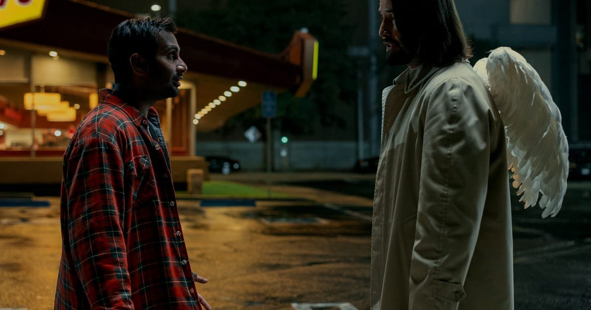 But it doesn’t last long. Jeff fires him for using the company card on a lavish date with Elena, and he’s back to square one. Exhausted and demoralised, Arj edges towards suicidality as a celestial power watches on from above: a guardian angel named Gabriel (Keanu Reeves) who decides he must intervene. We learn that Gabriel is a low-ranking angel whose primary assignment is to save people from texting-while-driving accidents by tapping them on the shoulder. He envies Azrael (Stephen McKinley Henderson) who wields more responsibility as a shepherd of ‘lost souls’ and has a pair of far larger feathered wings to show for it.