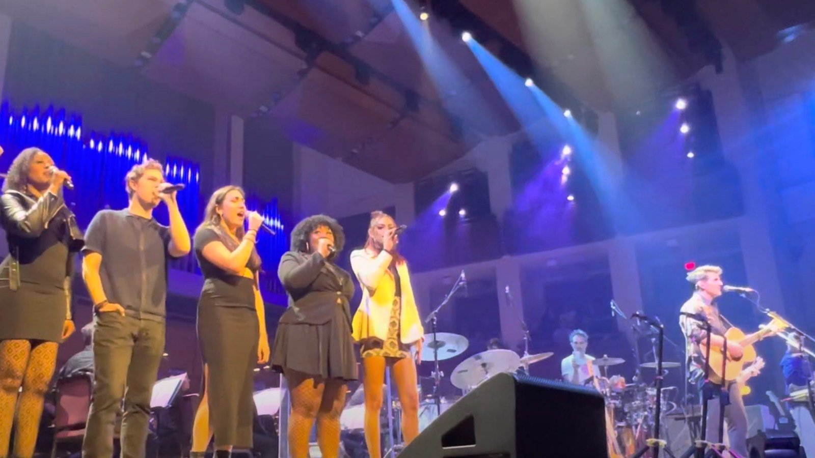 During the concert, Guster brought out the cast of Finn — an LGBTQ+ musical with trans themes whose own Kennedy Center performances were canceled after Trump named himself chairman — to perform with the band and the National Symphony Orchestra.
