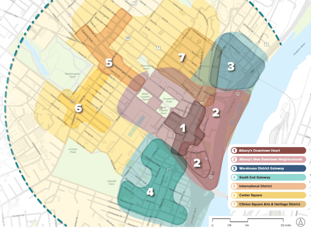 Map of areas slated for investmentt as part of the Downtown Albany Strategy, Feb 13, 2026 (Downtown Albany Strategy Final Report)Map of areas slated for investmentt as part of the Downtown Albany Strategy, Feb 13, 2026 (Downtown Albany Strategy Final Report)Governor Kathy Hochul has unveiled the Downtown Albany Strategy, a revitalization plan that is part of the $400 million Championing Albany’s Potential (CAP) Initiative.