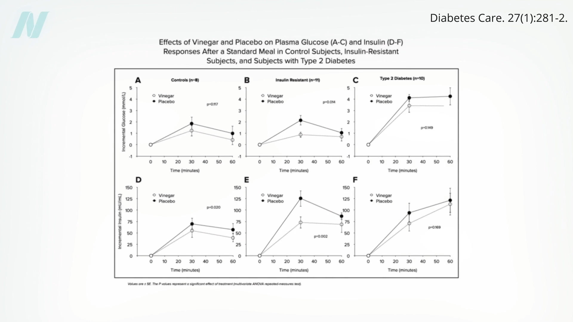 Speaking of How Not to Diet, remember the section on vinegar? The graph below illustrates the blood sugar and insulin spikes that someone with prediabetes may experience after eating a bagel. When that same bagel is consumed alongside a tablespoon or so of apple cider vinegar diluted in about a quarter cup of water, though, the spikes are significantly reduced, as you can see below and at 2:10 in my video.