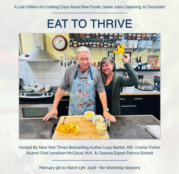 With that framework in mind, I want to announce, with great excitement on my end, our latest online experience, which is a collaboration I’m doing with Chef Jonathan McCloud and raw foods/ cleanse expert Patricia Barrett, who used to run the cleanses at my integrative medicine center in Marin County.