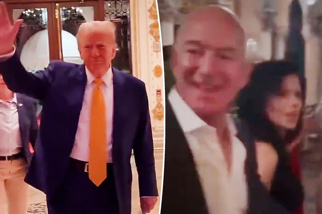 Jeff Bezos and his fiancée, Lauren Sánchez, were seen having a late-night dinner with President-elect Donald Trump at Mar-a-Lago on Wednesday.