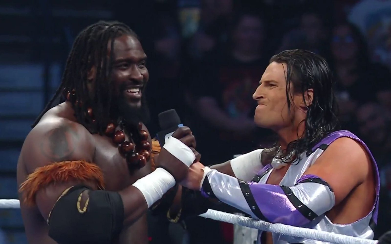To give some background and context, Kit Wilson has been WWE‘s most outspoken feminist, criticizing toxic masculinity and men in general. He has been writing a lot of poetry, and one of those poems got him in hot water last week as it directly led to a match against Oba Femi being set up on SmackDown. This week, Wilson came out again, and when The Ruler made his way, Wilson had an interaction with him before their match.