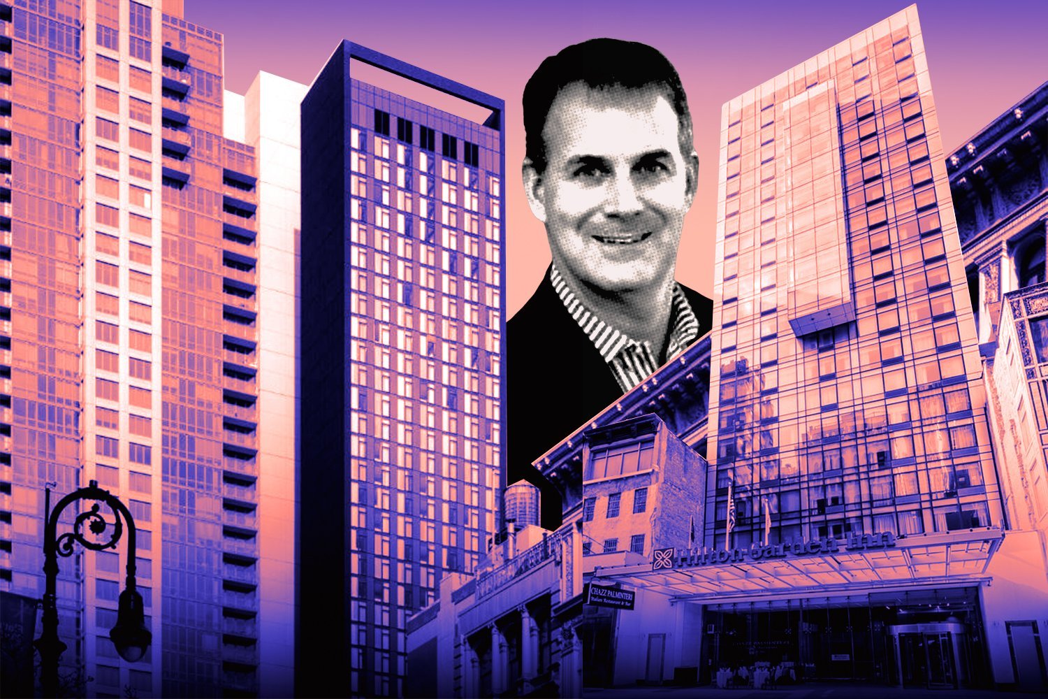 Magna CEO Robert Indeglia with the Courtyard by Marriott 307 West 37th Street and the Fairfield Inn & Suites at 325 West 33rd Street (Google; Magna)