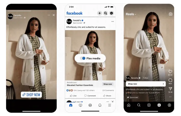 Meta’s also encouraging advertisers to tap into its new Flexible Media offering, which enables Meta’s ad system to deliver ads into new placements when it predicts that such will help performance.