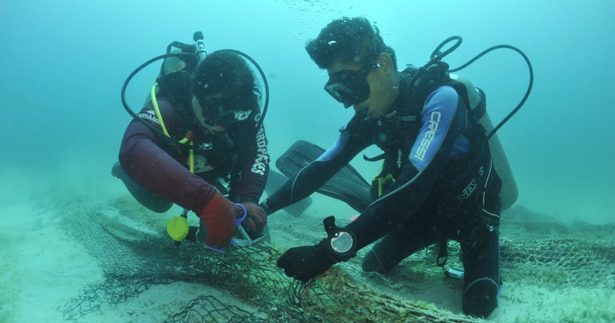 For two days, Ochoa, a dive specialist at Conservation International, had worked alongside 16 other divers to remove an abandoned 90-meter-long fishing net (300 feet) — nearly the length of a soccer field — that had become a deadly trap for marine animals. The process had been more complex than expected.