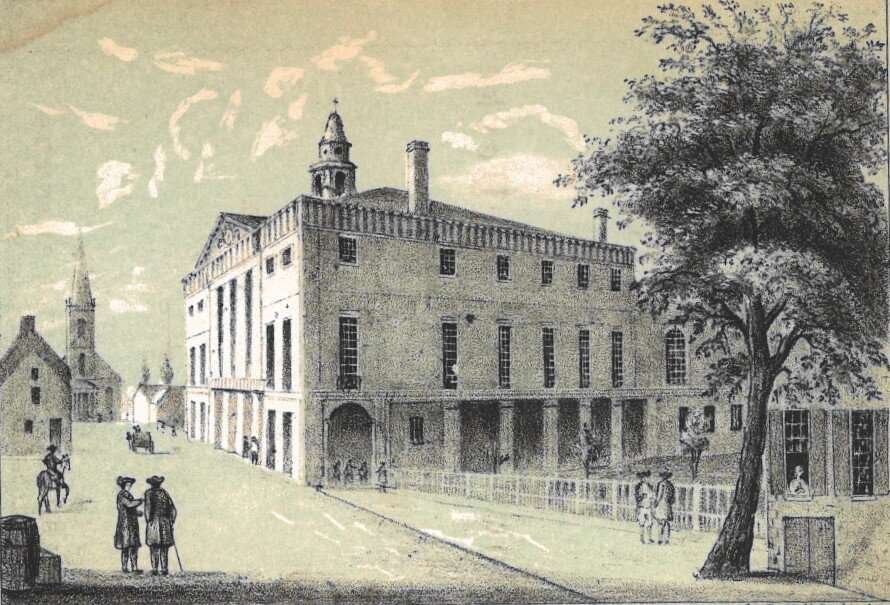 Illustration: “Old City Hall, Wall Street” from the Manual of the Corporation of the City of New York, D. T. Valentine, 1847 (NYC Municipal Library).