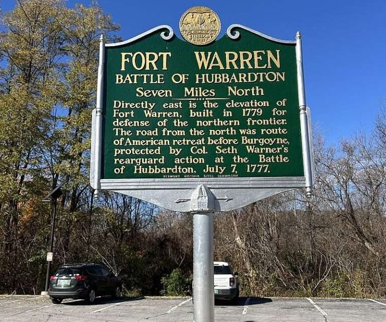 Likewise, the DAR marker for Fort Warren (1779) is concealed behind shrubs at a park-and-ride at the intersection of VT Route 4A and East Hubbardton Road in Castleton.