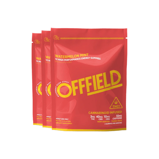 Offfield delivers a different kind of runner’s high with these gummies combining 3mg THC, 10mg CBG, 40mg CBD, and 10mg Yerba Mate caffeine, plus amino acids, carbohydrates, and electrolytes. Made to support the long run or heavy strength session, Offfield gummies also target faster recovery for holistic training support.