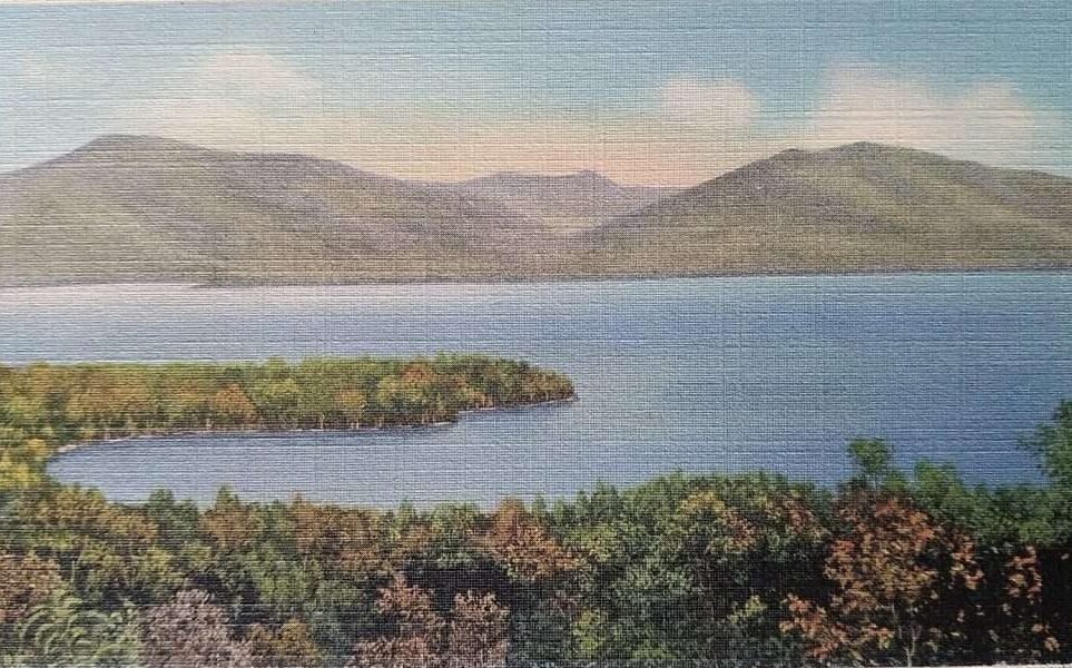 Lake George postcard shoing Fish Point, Basin Bay amd Pilot Knob, looking east from just north of Diamond PointLake George postcard shoing Fish Point, Basin Bay amd Pilot Knob, looking east from just north of Diamond PointIt was nearly two years after World War Two (1939–1945) had ended, but to some it may have seemed like aircraft were being shot out of the sky at Lake George, New York.