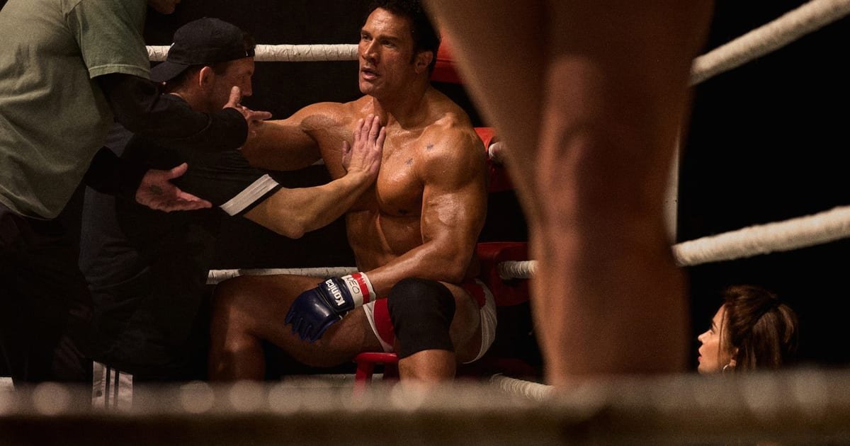 Even the decision to shoot all the UFC fights in a more traditional television event style (distant angles, quick cuts, cameras buzzing around like a fly) rather than the evocative and intimate close-ups that have defined masterworks like Raging Bull and even The Wrestler give The Smashing Machine its own signature. The handheld camerawork of previous Safdie films returns, with The Curse cinematographer Maceo Bishop (who also worked in the Uncut Gems camera department) stepping up to the plate, fashioning something that feels chaotic and thrilling but never out of control.