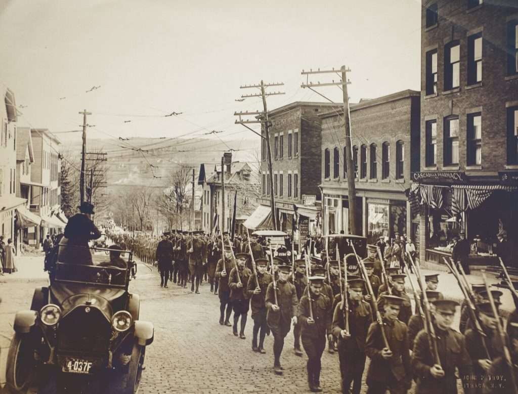 A World War I era military parade makes its way up Eddy Street in Ithaca (Tompkins County History Center)A World War I era military parade makes its way up Eddy Street in Ithaca (Tompkins County History Center)In March of 1918 several U.S. military units were sent to the Western Front of World War One.