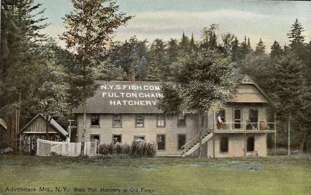 The Fulton Chain Fish Hatchery pictured here was established in Old Forge in 1868, to improve fish populations in depleted water bodies near forests being impacted by logging operations or overburdened by a growing tourist population.