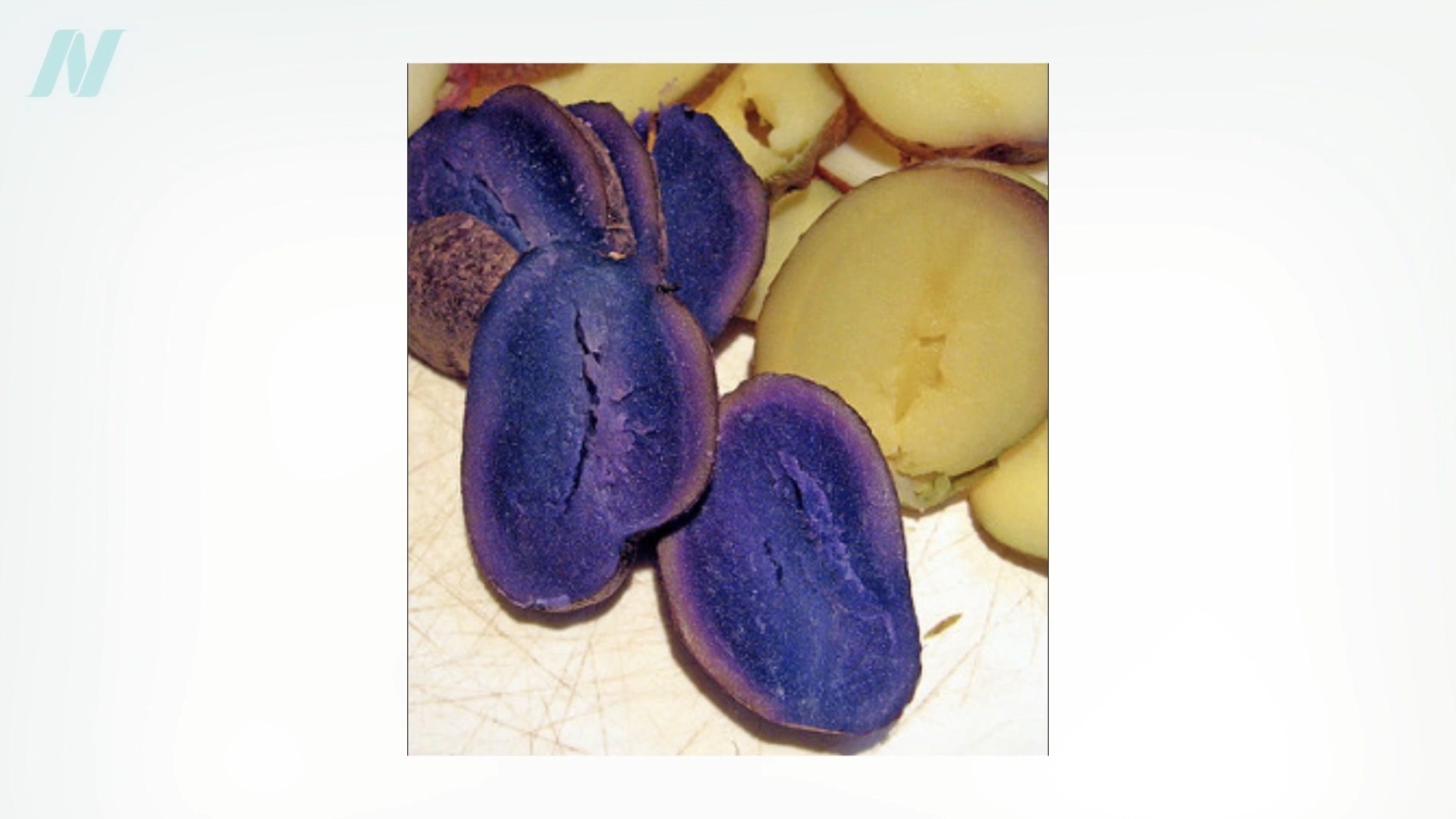Even regular yellow potatoes like Yukon gold may be preferable to white, but the best may be purple potatoes—not just purple-skinned potatoes but purple-fleshed potatoes. If you’ve never seen purple potatoes, they are remarkable—they have almost a neon-blue glow, which you can see below and at 1:14 in my video.