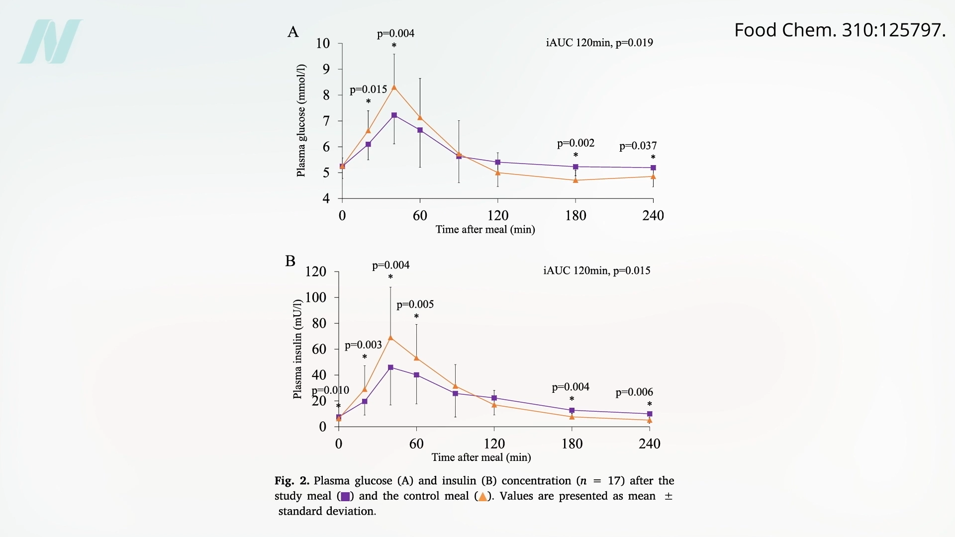 How do we know the pigments themselves are responsible, rather than other differences between the different potato varieties? Researchers tried using a control made of berries in a potato starch jelly, but that approach would seem to add even more variables. In a test tube, extracts of purple- and red-fleshed potatoes can act as starch blockers. So, if you extract and purify the purple potato pigments, you could remove any other effects of the different potato varieties by adding those purple pigments to yellow potatoes. And lo and behold, compared to plain yellow potatoes, this results in suppressions of blood sugar and insulin spikes. Instead of an overshoot reaction, where blood sugars can actually drop below fasting levels, you get the gentler rise and fall in blood sugars you’d expect from a lower glycemic food, as you can see below and at 2:25 in my video.