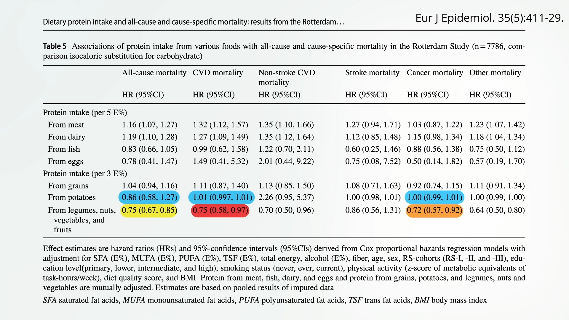 If you look at other whole plant foods—nuts, vegetables, fruits, and legumes (which are beans, split peas, chickpeas, and lentils)—they’re associated with living a longer life. Significantly less risk of dying from cancer, dying from cardiovascular diseases like heart attacks, and 25% less chance of dying prematurely from all causes put together. But no such protection is gained from potatoes for cancer, heart disease, or overall mortality. So, the fact that potatoes don’t seem to affect mortality can be seen as a downside. Now, it’s not like meat, which may actually actively shorten your life, as you can see below and at 1:28 in my video Glycemic Index of Potatoes: Why You Should Chill and Reheat Them.